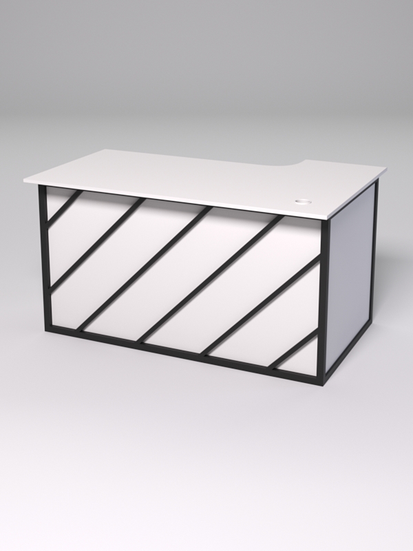 Стол состоит из 4х деталей, которые скрепляются между собой конфирматами и мебельными уголками. Столешница имеет фигурный вырез со стороны работника. Инструкция по сборке не требуется.