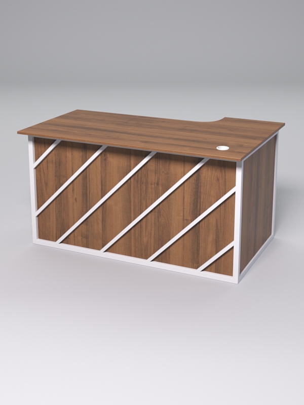 Стол эргономичный офисный СЭ-19А (левосторонний) "СТРОНГ" в стиле ЛОФТ декор №2, Орех + металлический каркас Белый