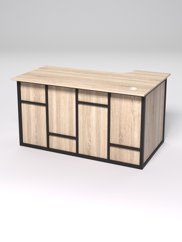 Стол состоит из 4х деталей, которые скрепляются между собой конфирматами и мебельными уголками. Столешница имеет фигурный вырез со стороны работника. Инструкция по сборке не требуется.