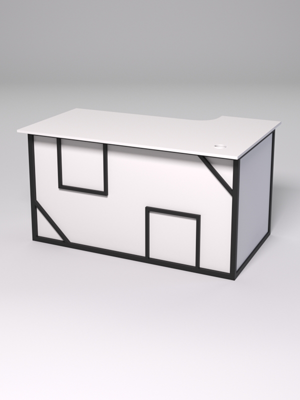 Стол состоит из 4х деталей, которые скрепляются между собой конфирматами и мебельными уголками. Столешница имеет фигурный вырез со стороны работника. Инструкция по сборке не требуется.