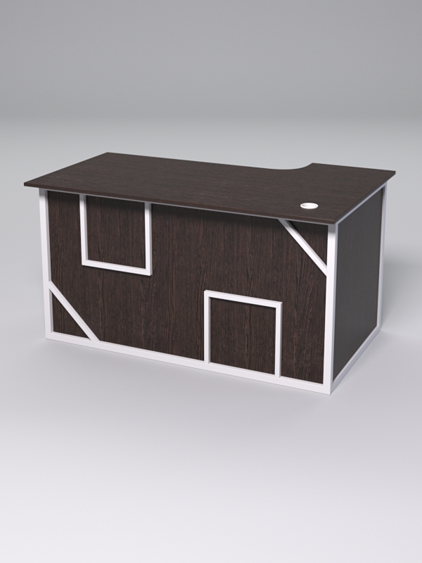 Стол состоит из 4х деталей, которые скрепляются между собой конфирматами и мебельными уголками. Столешница имеет фигурный вырез со стороны работника. Инструкция по сборке не требуется.