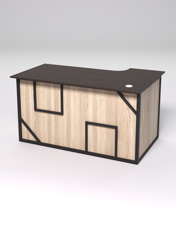 Стол состоит из 4х деталей, которые скрепляются между собой конфирматами и мебельными уголками. Столешница имеет фигурный вырез со стороны работника. Инструкция по сборке не требуется.