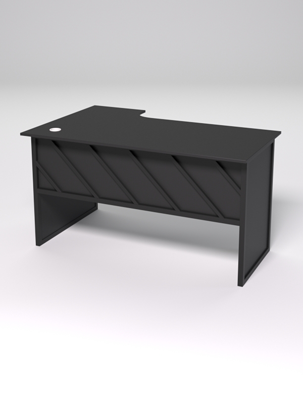 Стол состоит из 4х деталей, которые скрепляются между собой конфирматами и мебельными уголками. Столешница имеет фигурный вырез со стороны работника. Инструкция по сборке не требуется.