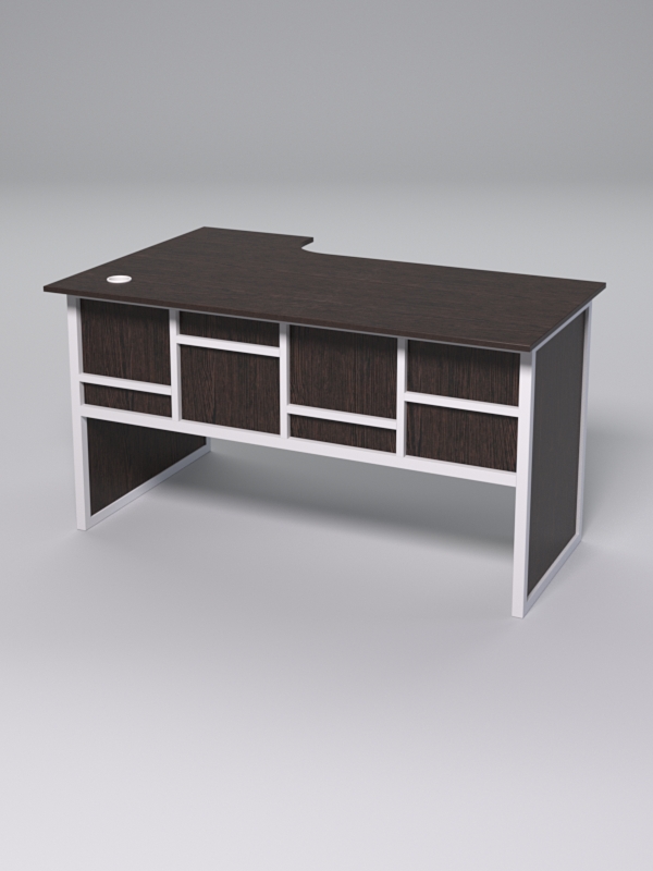 Стол состоит из 4х деталей, которые скрепляются между собой конфирматами и мебельными уголками. Столешница имеет фигурный вырез со стороны работника. Инструкция по сборке не требуется.
