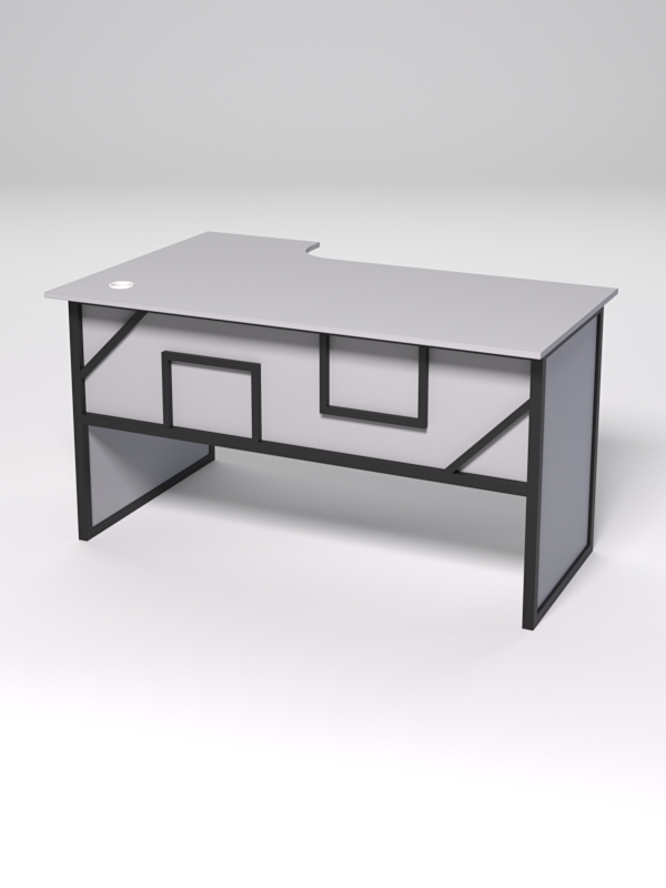 Стол состоит из 4х деталей, которые скрепляются между собой конфирматами и мебельными уголками. Столешница имеет фигурный вырез со стороны работника. Инструкция по сборке не требуется.
