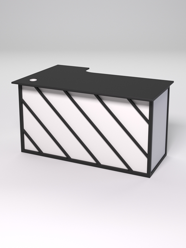Стол состоит из 4х деталей, которые скрепляются между собой конфирматами и мебельными уголками. Столешница имеет фигурный вырез со стороны работника. Инструкция по сборке не требуется.