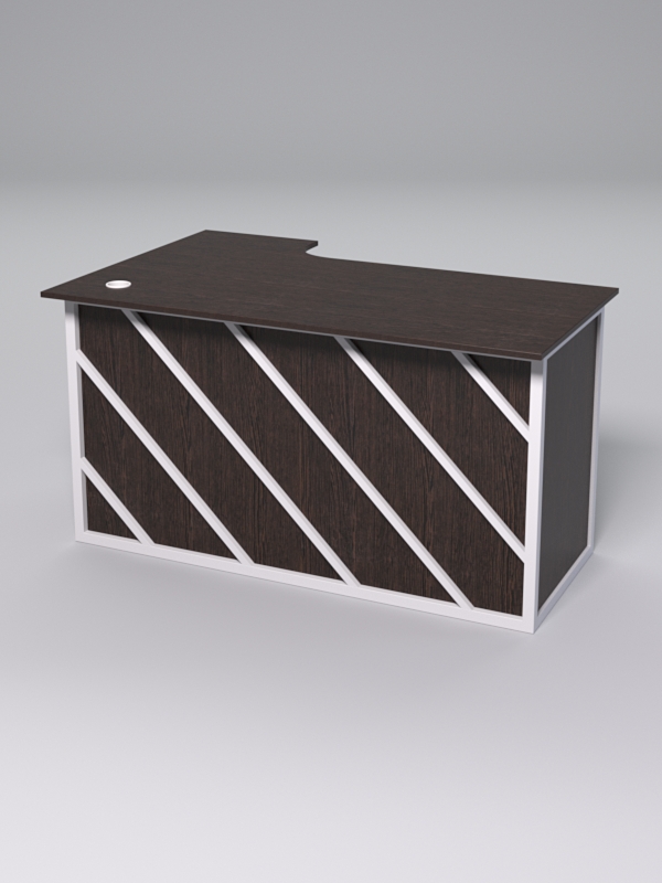 Стол состоит из 4х деталей, которые скрепляются между собой конфирматами и мебельными уголками. Столешница имеет фигурный вырез со стороны работника. Инструкция по сборке не требуется.