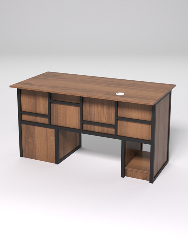 В столе с левой стороны предусмотрено место для системного блока, справа расположена тумба с 3мя выдвижными ящиками для документов. Нижняя столешница выдвижная, направляющие — шариковые. Инструкция по сборке не требуется.