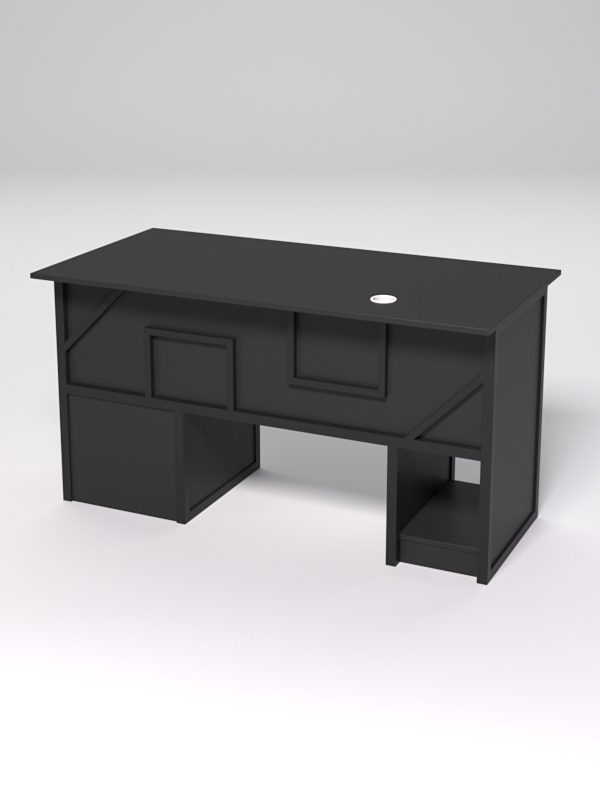 В столе с левой стороны предусмотрено место для системного блока, справа расположена тумба с 3мя выдвижными ящиками для документов. Нижняя столешница выдвижная, направляющие — шариковые. Инструкция по сборке не требуется.