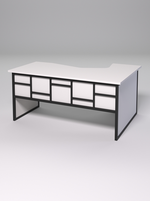 Стол левосторонний. Отличный вариант для работы в офисе. Имеет практичную угловую конструкцию и поможет рационально организовать пространство. Отличный вариант для кабинета руководителя. Также подойдет в приемную и переговорную комнату. Изделие удобное для работы за компьютером. Помимо этого большая рабочая поверхность будет необходима в том случае, если работа предполагает контакты с посетителями или введение переговоров— сразу два человека могут сесть за стол с внешней стороны. Под столом имеется пространство, где можно поставить тумбочку или системный блок для компьютера. А благодаря своему стильному внешнему виду станет важной частью имиджа компании.