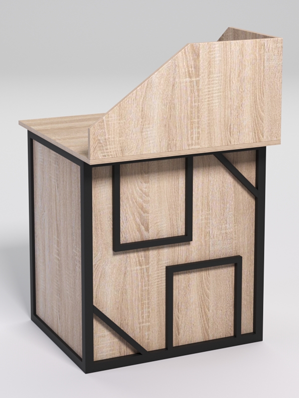 Мебель выполнена в стиле лофт. По внешнему виду напоминает два треугольника и два квадрата. Лофт подходит для различных стилей интерьера и может быть использована как в коммерческих, так и в жилых помещениях.