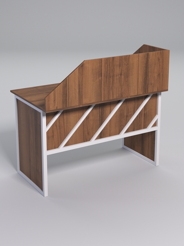 Стол рабочий офисный С-02 с экраном "СТРОНГ" в стиле ЛОФТ декор №2, Орех + металлический каркас Белый