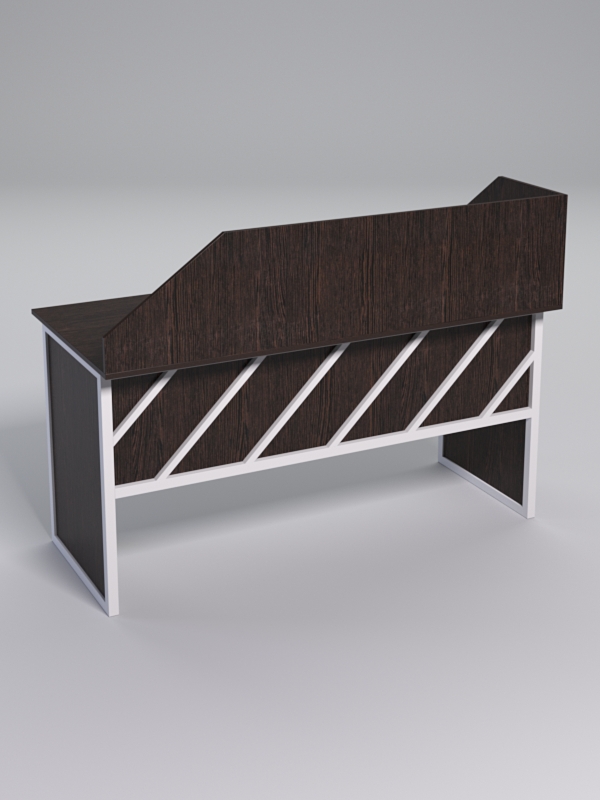 Стол рабочий офисный С-04А с экраном "СТРОНГ" в стиле ЛОФТ декор №2, Дуб Венге + металлический каркас Белый