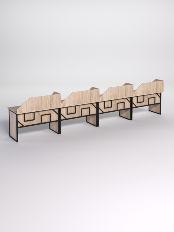 Столы рабочие офисные С-02 с экраном (комплект 4шт) "СТРОНГ" в стиле ЛОФТ декор №4, Дуб Сонома