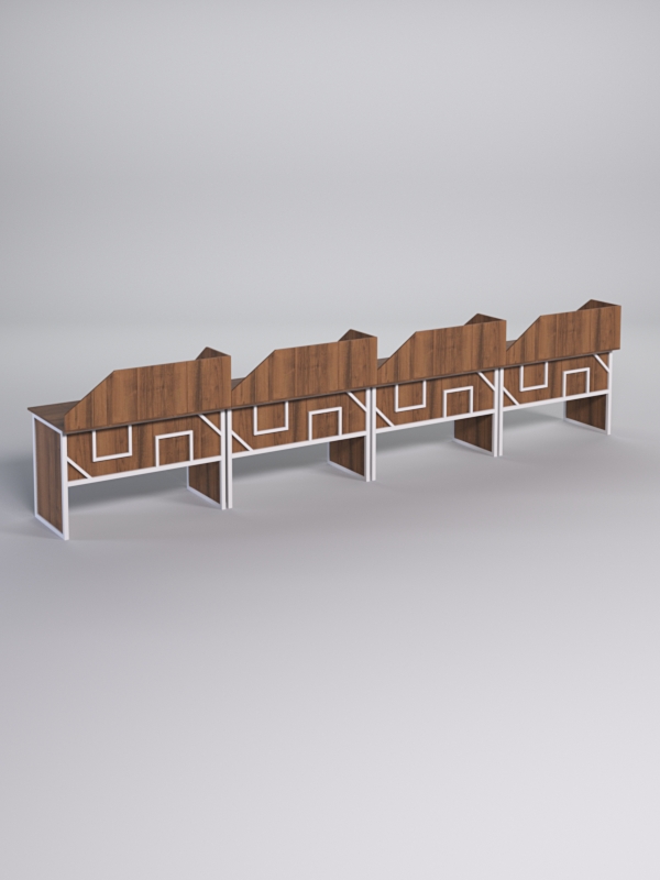 Столы рабочие офисные С-02 с экраном (комплект 4шт) "СТРОНГ" в стиле ЛОФТ декор №4, Орех + металлический каркас Белый