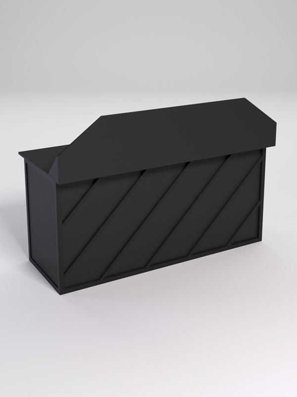Конструкция оснащена заглушкой для проводов компьютера. Передняя часть стола закрытая и не видно ног пользователя стола.
