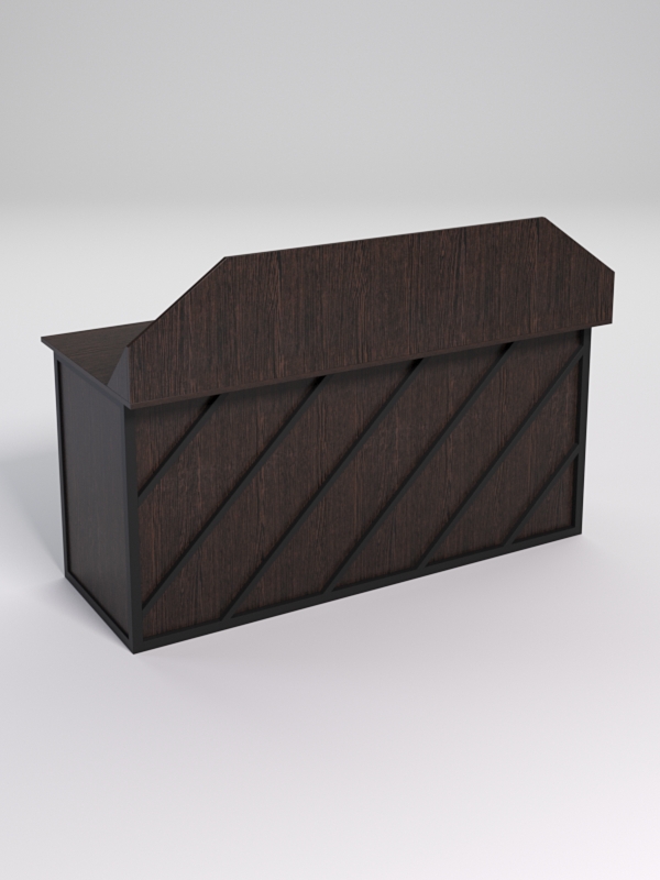 Конструкция оснащена заглушкой для проводов компьютера. Передняя часть стола закрытая и не видно ног пользователя стола.