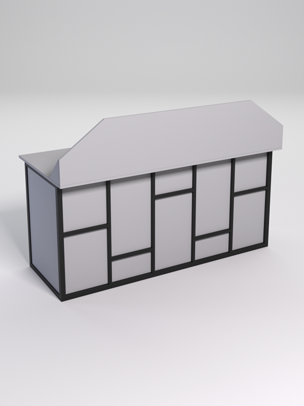Конструкция оснащена заглушкой для проводов компьютера. Передняя часть стола закрытая и не видно ног пользователя стола.