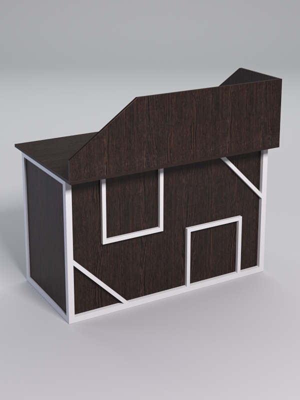 Модель выполнена в стиле лофт и оформлена оригинальным дизайном оформлением, по внешнему виду напоминающим два квадрата и два трегуольника.