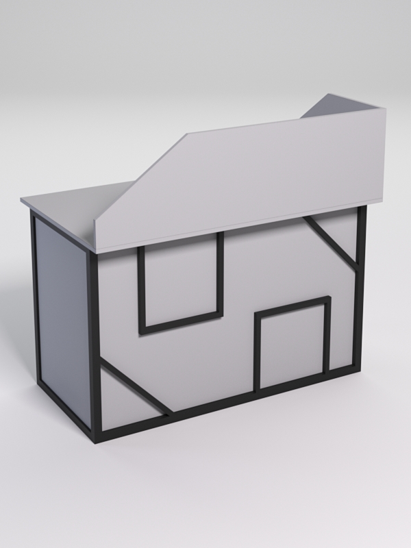 Модель выполнена в стиле лофт и оформлена оригинальным дизайном оформлением, по внешнему виду напоминающим два квадрата и два трегуольника.