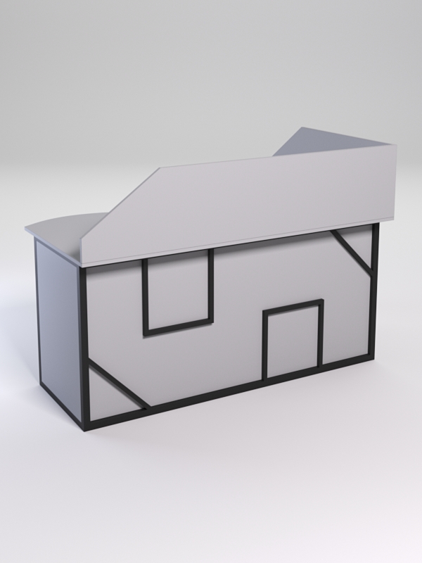 Мебель выполнена в стиле лофт с оригинальными и необычными узорами, по внешнему виду напоминающим два квадрата и два треугольника. Стиль лофт подходит для различных стилей интерьера и может быть использована как в коммерческих, так и в жилых помещениях. Столешница стола также имеет необычную волнообразную форму.