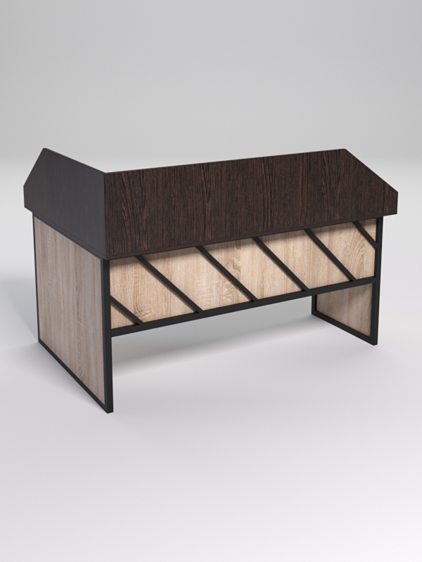 Мебель выполнена в стиле лофт с оригинальными и необычными узорами, по внешнему виду диагональные линии. Стиль лофт подходит для различных стилей интерьера и может быть использована как в коммерческих, так и в жилых помещениях. Столешница стола также имеет необычную волнообразную форму.