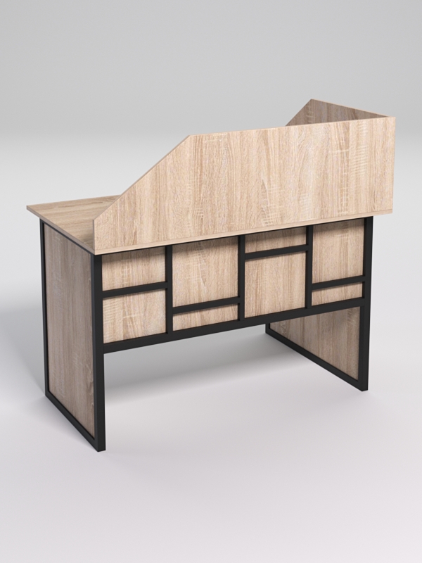 Стол эргономичный офисный СЭ-15 (левосторонний) с экраном "СТРОНГ" в стиле ЛОФТ декор №3, Дуб Сонома