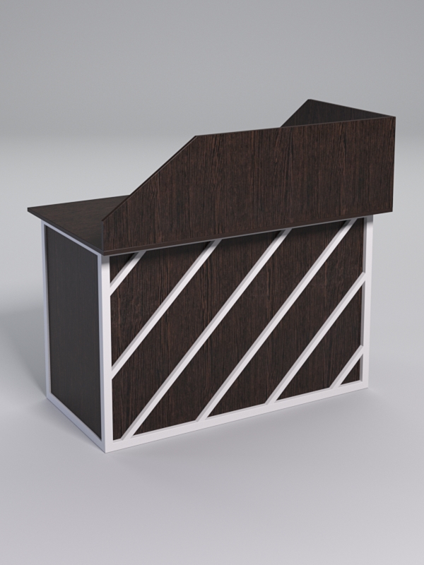 Мебель выполнена в стиле лофт. Фронтальная часть оснащена металлическими декоративными конструкциями, которые составляют оригинальный узор, по внешнему виду напоминает диагональные линии. Стиль лофт подходит для различных стилей интерьера и может быть использована как в коммерческих, так и в жилых помещениях.