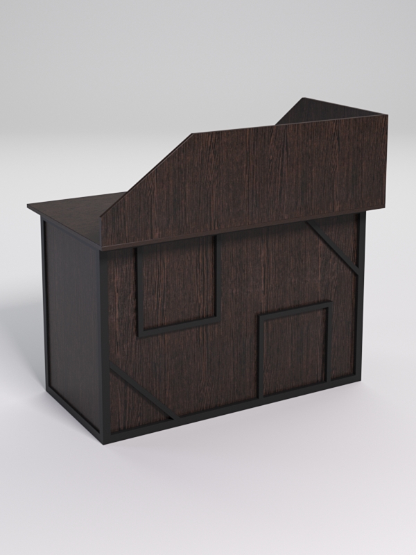 Мебель выполнена в стиле лофт. Фронтальная часть оснащена металлическими декоративными конструкциями, которые составляют оригинальный узор, напоминающий два квадрата и два треугольника. Стиль лофт подходит для различных стилей интерьера и может быть использована как в коммерческих, так и в жилых помещениях.