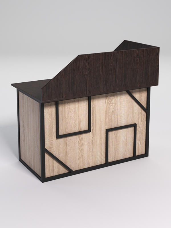 Мебель выполнена в стиле лофт. Фронтальная часть оснащена металлическими декоративными конструкциями, которые составляют оригинальный узор, напоминающий два квадрата и два треугольника. Стиль лофт подходит для различных стилей интерьера и может быть использована как в коммерческих, так и в жилых помещениях.