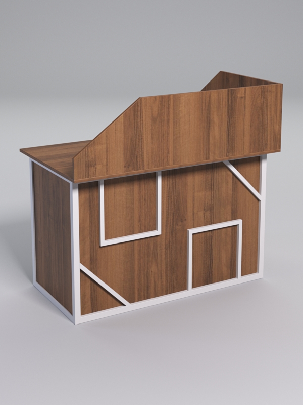 Мебель выполнена в стиле лофт. Фронтальная часть оснащена металлическими декоративными конструкциями, которые составляют оригинальный узор, напоминающий два квадрата и два треугольника. Стиль лофт подходит для различных стилей интерьера и может быть использована как в коммерческих, так и в жилых помещениях.