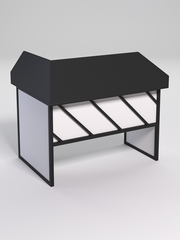 Мебель выполнена в стиле лофт. Фронтальная часть оснащена металлическими декоративными конструкциями, которые составляют оригинальный узор, напоминающим диагональные линии. Стиль лофт подходит для различных стилей интерьера и может быть использована как в коммерческих, так и в жилых помещениях.