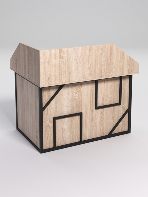 Мебель выполнена в стиле лофт. Фронтальная часть оснащена металлическими декоративными конструкциями, которые образуют оригинальные узоры, которые по внешнему виду напоминающие два квадрата и два треугольника. Стиль лофт подходит для различных стилей интерьера и может быть использована как в коммерческих, так и в жилых помещениях.