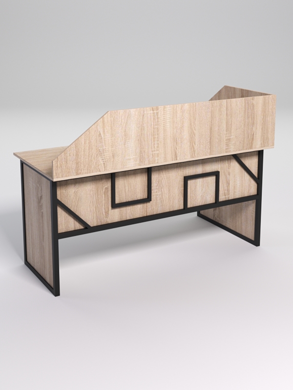 Мебель выполнена в стиле лофт. Фронтальная часть оснащена металлическими декоративными конструкциями, которые составляют оригинальный узор, по внещнему виду напоминающий два квадрата и треугольника. Стиль лофт подходит для различных стилей интерьера и может быть использована как в коммерческих, так и в жилых помещениях.