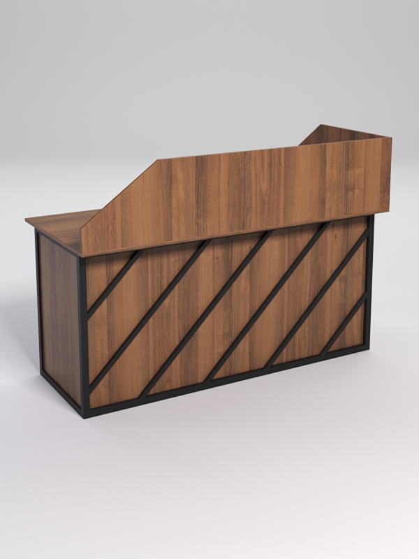 Мебель выполнена в стиле лофт. Фронтальная часть оснащена металлическими декоративными конструкциями, которые составляют оригинальный узор, по внещнему виду напоминающий диагональные линии. Стиль лофт подходит для различных стилей интерьера и может быть использована как в коммерческих, так и в жилых помещениях.