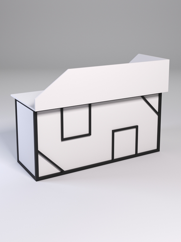 Мебель выполнена в стиле лофт. Фронтальная часть оснащена металлическими декоративными конструкциями, которые составляют оригинальный узор, который напоминает два треугольника и два квадрата. Стиль лофт подходит для различных стилей интерьера и может быть использована как в коммерческих, так и в жилых помещениях.
