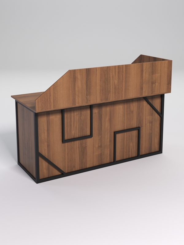 Мебель выполнена в стиле лофт. Фронтальная часть оснащена металлическими декоративными конструкциями, которые составляют оригинальный узор, который напоминает два треугольника и два квадрата. Стиль лофт подходит для различных стилей интерьера и может быть использована как в коммерческих, так и в жилых помещениях.