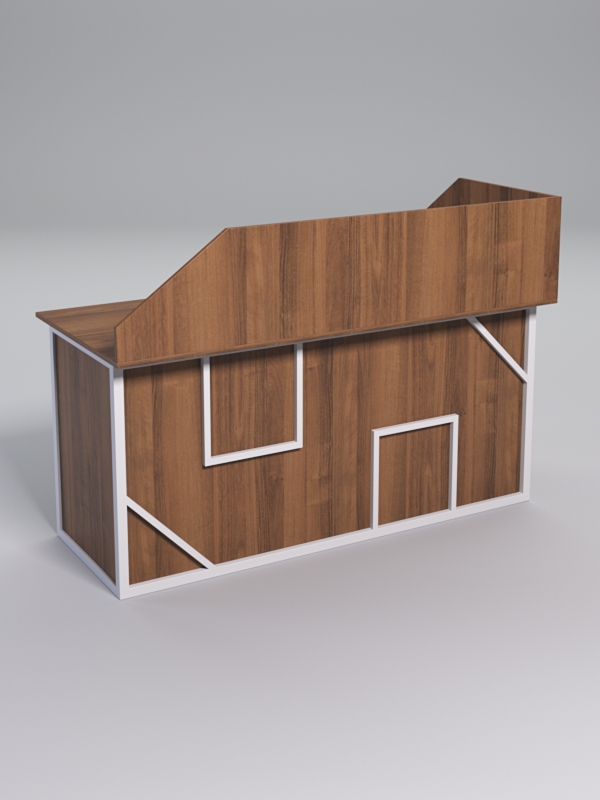 Мебель выполнена в стиле лофт. Фронтальная часть оснащена металлическими декоративными конструкциями, которые составляют оригинальный узор, который напоминает два треугольника и два квадрата. Стиль лофт подходит для различных стилей интерьера и может быть использована как в коммерческих, так и в жилых помещениях.