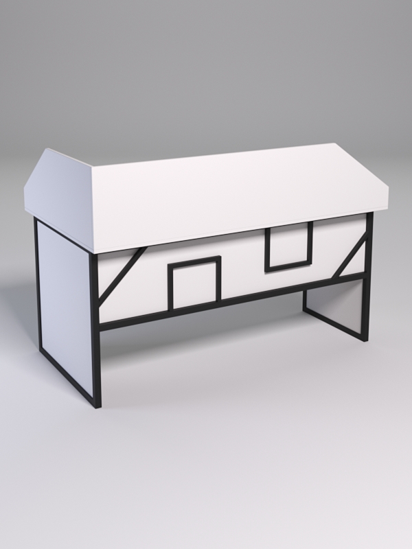 Мебель выполнена в стиле лофт. Фронтальная часть оснащена металлическими декоративными конструкциями, которые составляют оригинальный узор, который по внещнему виду напоминает два квадрата и два треугольника. Стиль лофт подходит для различных стилей интерьера и может быть использована как в коммерческих, так и в жилых помещениях.