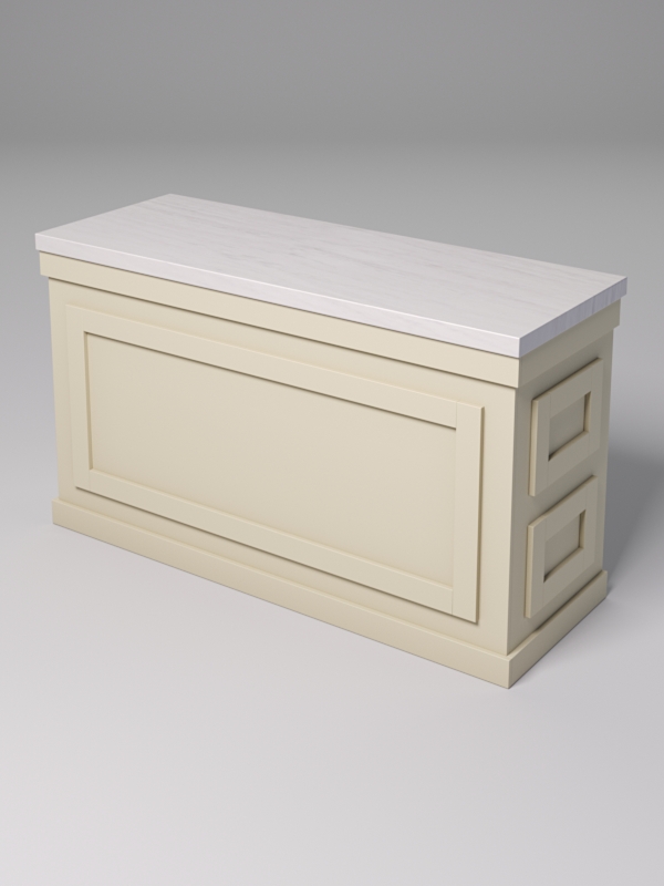 Столешницы выполнены из искусственного камня — материала прочного и устойчивого к влаге. На них будет удобно разместить цветочные горшки, сувенирную продукцию, инвентарь и упаковочные материалы, кассовый аппарат.