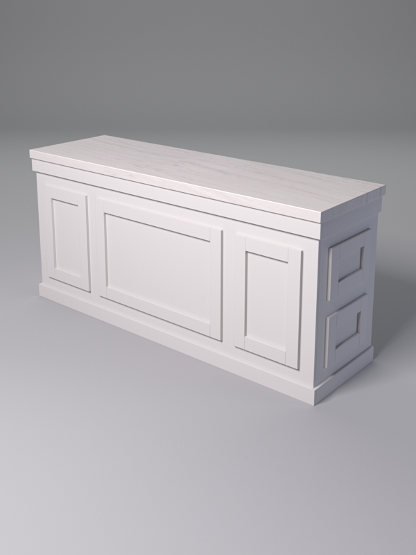 Столешницы выполнены из искусственного камня — материала прочного и устойчивого к влаге. На них будет удобно разместить цветочные горшки, сувенирную продукцию, инвентарь и упаковочные материалы, кассовый аппарат.