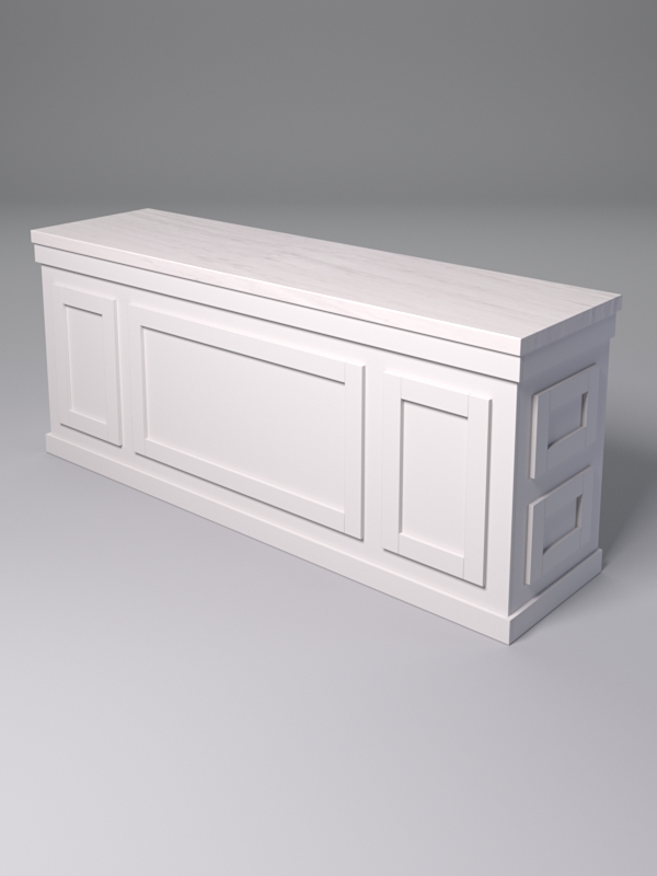 Столешницы выполнены из искусственного камня — материала прочного и устойчивого к влаге. На них будет удобно разместить цветочные горшки, сувенирную продукцию, инвентарь и упаковочные материалы, кассовый аппарат.