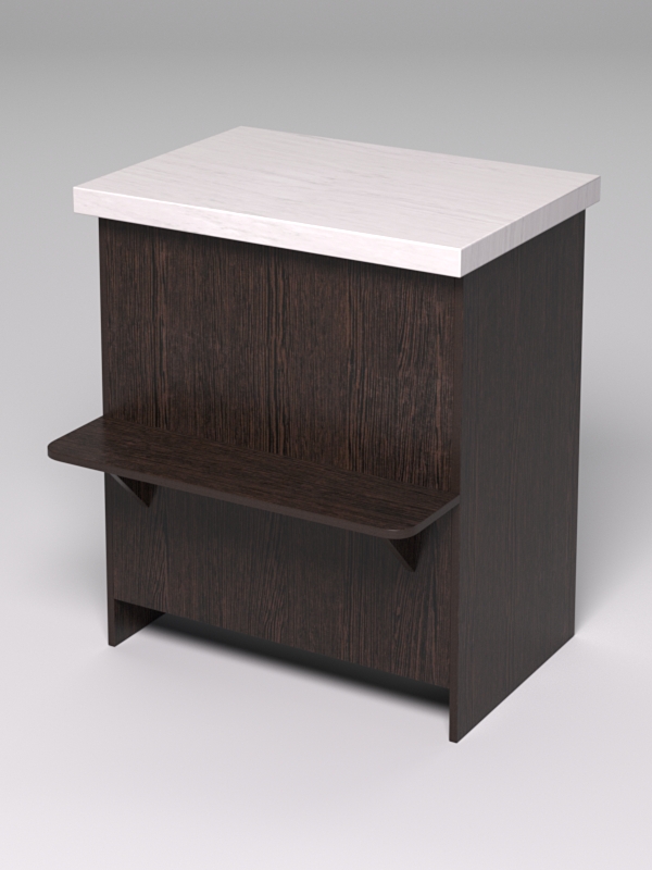 Столешница выполнен из искусственного камня. На передней панели имеется полка, на которую покупатель может поставить сумку, чтобы удобнее было выбирать цветы.