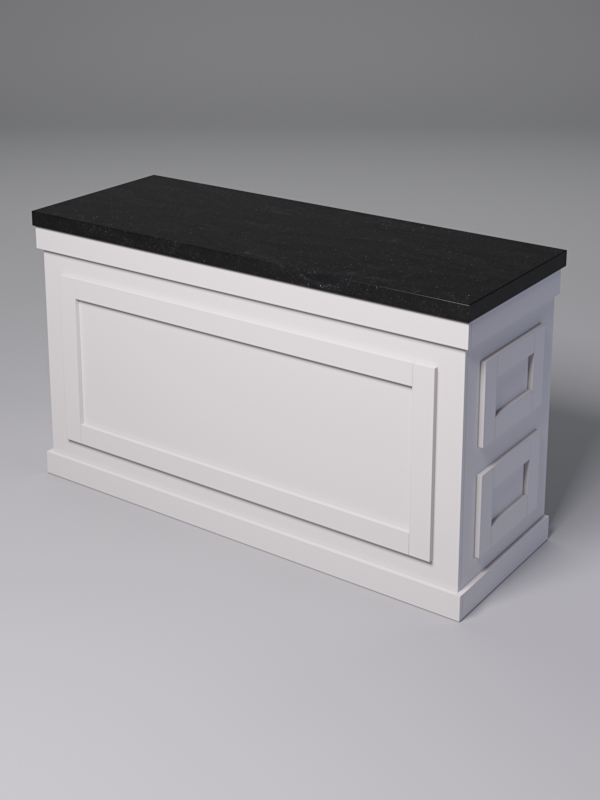 Столешницы выполнены из искусственного камня — материала прочного и устойчивого к влаге. На них будет удобно разместить цветочные горшки, сувенирную продукцию, инвентарь и упаковочные материалы, кассовый аппарат.