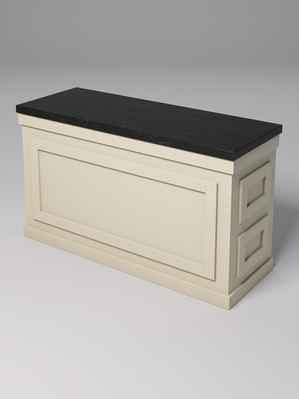 Столешницы выполнены из искусственного камня — материала прочного и устойчивого к влаге. На них будет удобно разместить цветочные горшки, сувенирную продукцию, инвентарь и упаковочные материалы, кассовый аппарат.