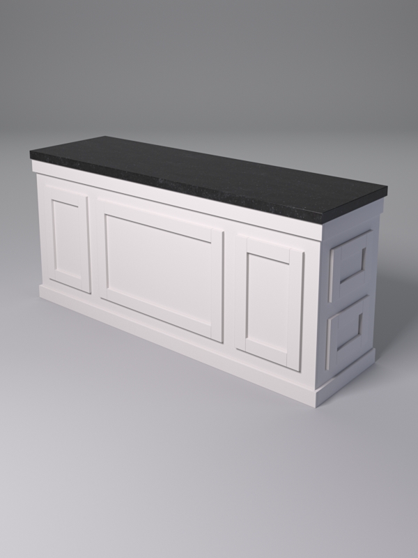 Столешницы выполнены из искусственного камня — материала прочного и устойчивого к влаге. На них будет удобно разместить цветочные горшки, сувенирную продукцию, инвентарь и упаковочные материалы, кассовый аппарат.