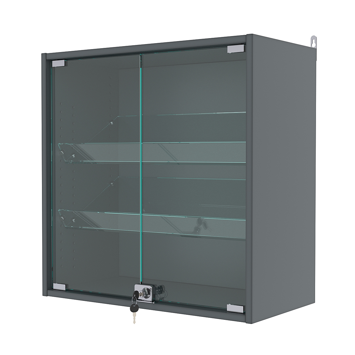 Кол-во наклонных полок из стекла 5 мм: 2 шт., расстояние между которыми 185 мм, глубина 254 мм;