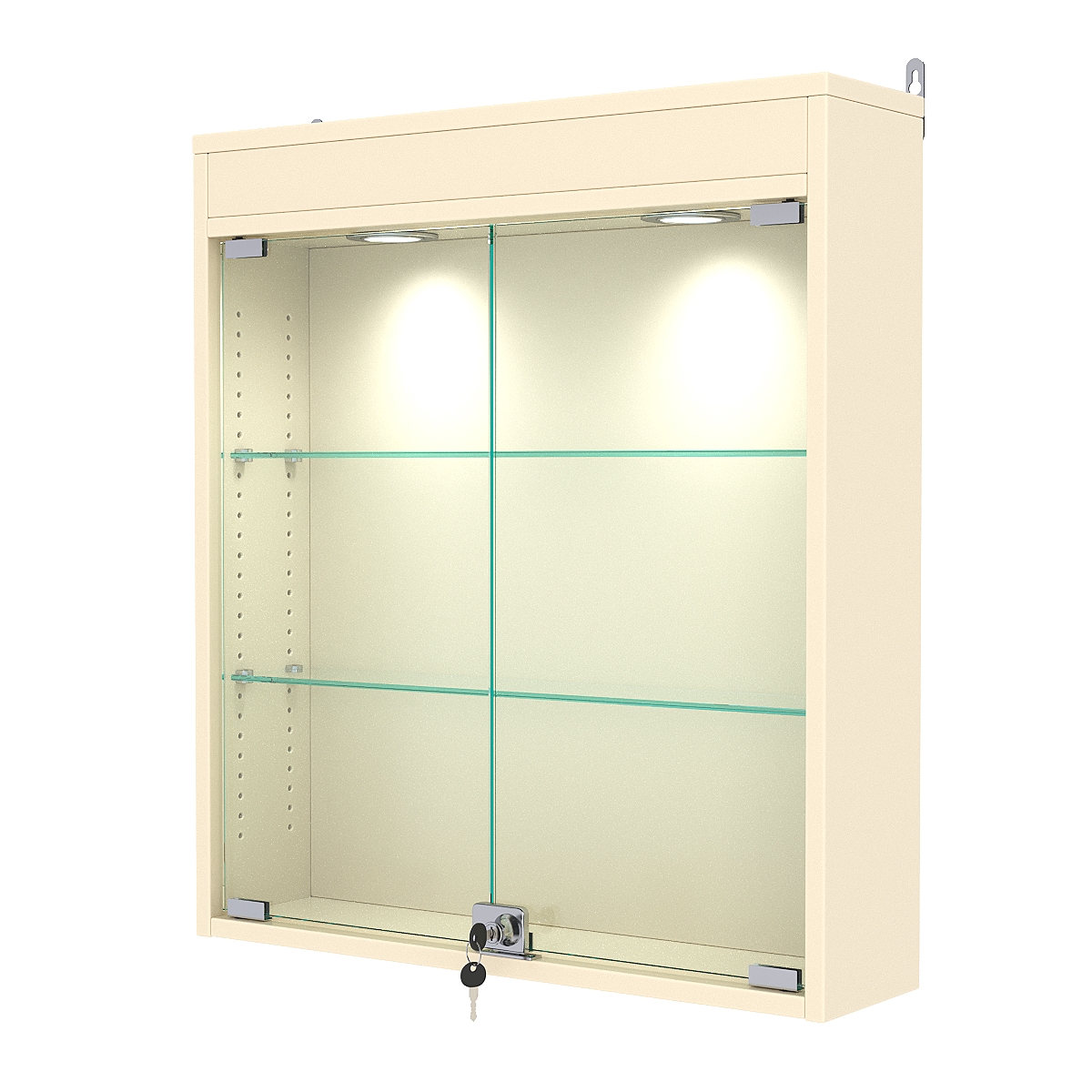 Кол-во полок из стекла 5 мм: 2 шт., расстояние между которыми 185 мм, глубина 97 мм;