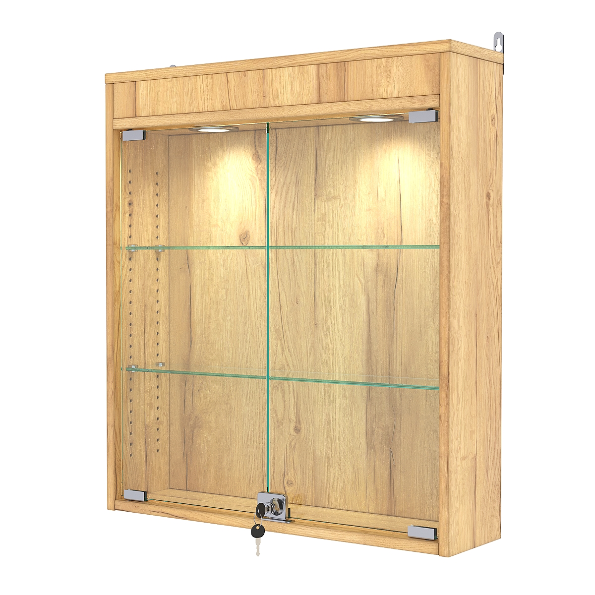 Витрина настенная с регулировочными полками №1-3А-РЕГ с подсветкой, Дуб Золотистый