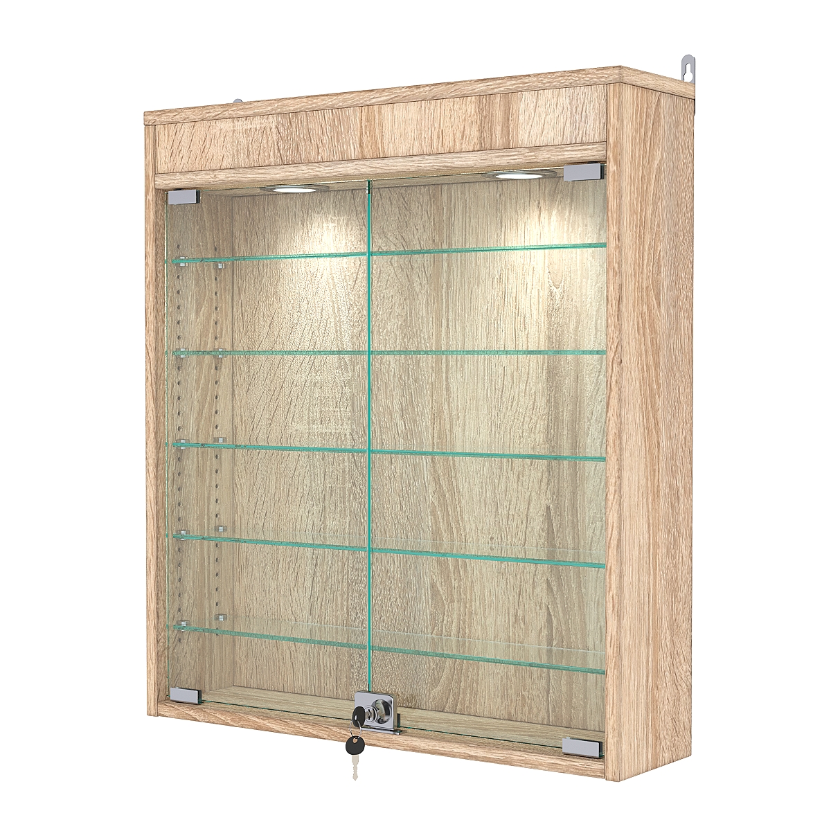 Витрина настенная с регулировочными полками №1-7А-РЕГ с подсветкой, Дуб Сонома